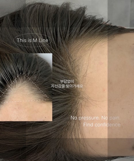 헤어라인 반영구: 정수리보다는 이마 라인, 특히 M자 부분이나 꺼진 헤어라인을 자연스럽게 채워 얼굴형을 교정하는 시술입니다.